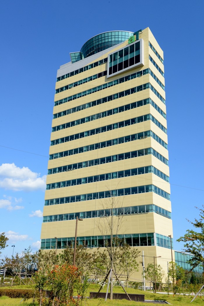 14일 전남 나주시에 따르면 한국농수산식품유통공사(aT)가 서울 서초구 양재동 시대를 마감하고 나주 빛가람혁신도시에서 오는 22일부터 공식 업무에 들어간다. 사진은 중앙호수공원 인근에 자리 잡은 aT 신청사로 부지 1만8757㎡, 건축면적 1만8511㎡, 지상 15층, 지하 2층 규모로 건축됐다.
