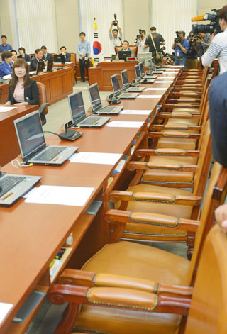 여당 단독 운영위원회 전체회의가 열린 16일 오전 서울 여의도 국회 운영위 회의실에 야당의 불참으로 의원석이 비어 있다.