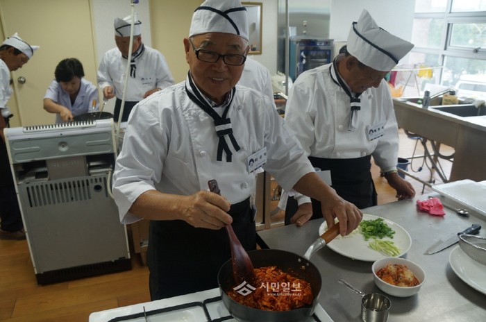 지난 17일부터 경기 양평군이 지역내 65세 이상 남성 노인들을 대상으로 가족애를 돈독히하고 노인들 스스로 건강한 노후를 준비하도록 돕기 위해 다양한 요리를 배우는 '요리하는 청춘' 프로그램의 운영을 시작했다. 사진은 참여자들이 직접 요리 중인 모습. (사진제공=양평군청)
