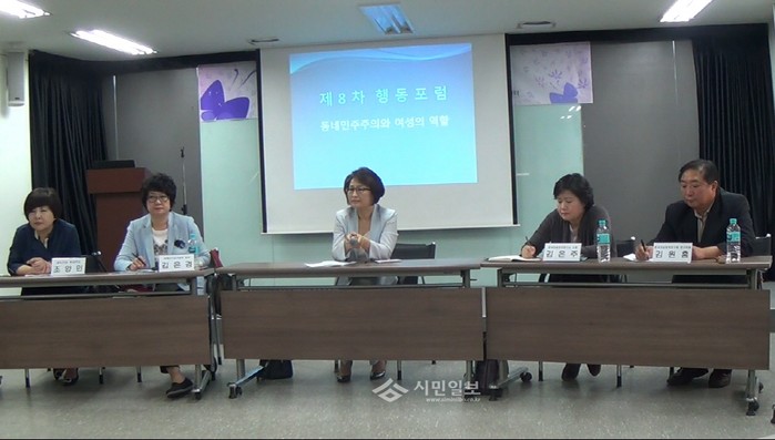 | ▲ '동네민주주의와 여성의 역할'이라는 주제로 열린 행동하는 여성연대 토론회 모습. | ||