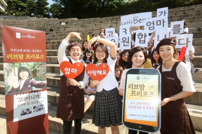 ㈜카페베네(대표 김선권)는 수능을 50여일 앞둔 고3 수험생을 대상으로 사랑하는 부모님께 영상편지를 전달하는 ‘러브맘 프러포즈’를 오는 10월 31일까지 진행한다.