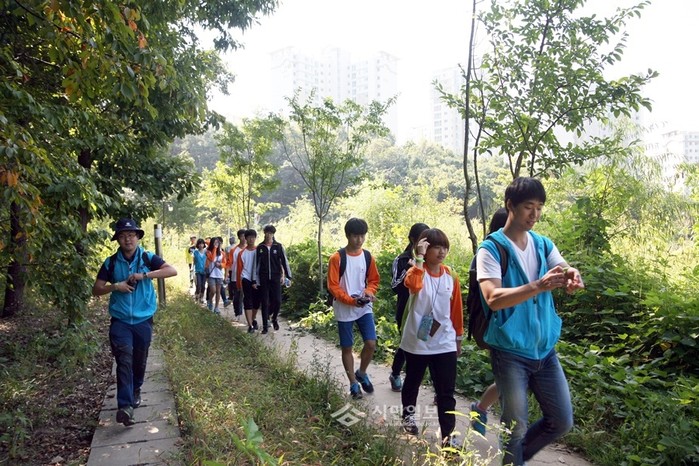 최근 경기 고양시 고양문화재단이 운영하는 청소년시설 '탄현청소년카페별'에서 '나를 찾아 떠나는 고양 600년 누리길'을 주제로 '고봉누리길 도보여행', '길에서 나 찾기', '소감발표' 등의 세부 프로그램을 진행했다. 사진은 참여자들이 걷는 모습.(사진제공=고양시청)