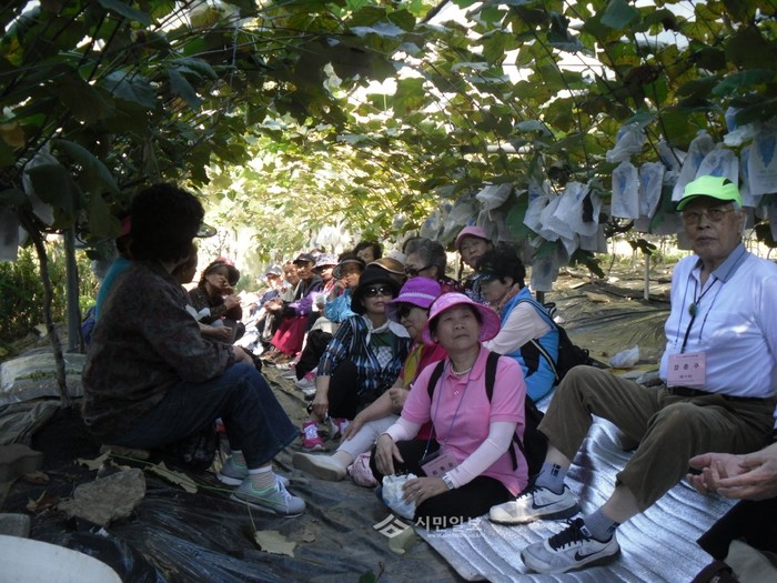 지난 23일 서울 은평구 진관동 복지두레는 신체적·경제적 어려움과 정서적 외로움으로 우울증 가능성이 높아 자살위험군으로 분류된 소외계층 주민 40명과 함께하는 '가을맞이 자살예방 테마여행'을 실시했다. 사진은 이날 여행에 참가한 주민들의 모습. (사진제공=은평구청)