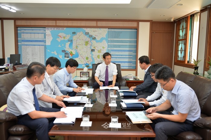 지난 24일 이상복 인천 강화군수가 '군민이 행복한 강화!'를 만들기 위한 '2015년도 주요업무계획 보고회'에 참석해 부서별 신규 추진사업, 창의시책, 현안사항 등 주요사항을 보고받고 행정력을 집중해줄 것을 당부하고 있다. (사진제공=강화군청)