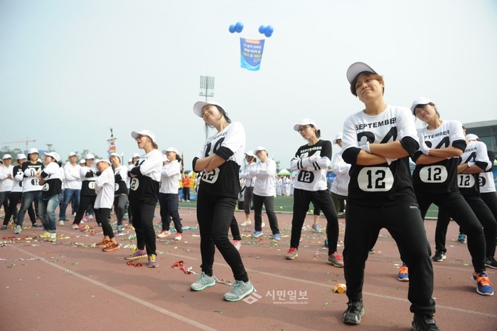 지난 28일 경기 하남시가 하남종합운동장에서 '시 승격 25주년 기념 2014 하남시민의 날 체육대회'를 열고 이교범 시장 외 관계자들과 시민 2만여명이 참여해 축하공연, 특전사 무술시범, 육상 등이 경기가 진행됐다. 사진은 체육대회 중 퍼포먼스가 진행 중인 모습. (사진제공=하남시청)