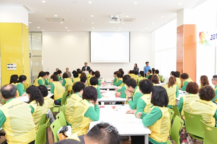 경기 양주시는 최근 산북동에 위치한 경기섬유종합지원센터에서 우수봉사단체 대표자들과 회원 등 32개 단체, 100여명이 참석한 가운데 '2014 양주시 우수 자원봉사단체 힐링 워크숍’을 실시했다. 사진은 힐링 워크숍에 참여한 봉사단체 회원들이 현삼식 시장의 인사말을 듣는 모습. (사진제공=양주시청)