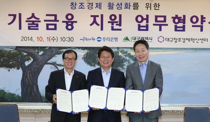 이번 협약에 따라 우리은행은 대구창조경제혁신센터를 통해 발굴·추천된 우수기술 보유 중소·벤처기업에 특별 우대금리로 기술금융을 지원하고, 성장 단계별 맞춤형 컨설팅 등 종합적인 금융서비스를 제공한다.