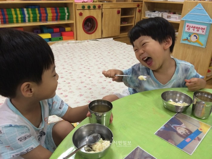 최근 서울 금천구 어린이급식관리지원센터는 지역내 어린이집 26곳이 참여한 '제2회 급식체험 활동사진 콘테스트'를 열고 8곳을 수상자로 선정해 시상식을 했다. 사진은 콘테스트에서 대상을 수상한 작품인 개미어린이집의 '냠냠 그렇게 맛있어?'의 모습. (사진제공=금천구청)