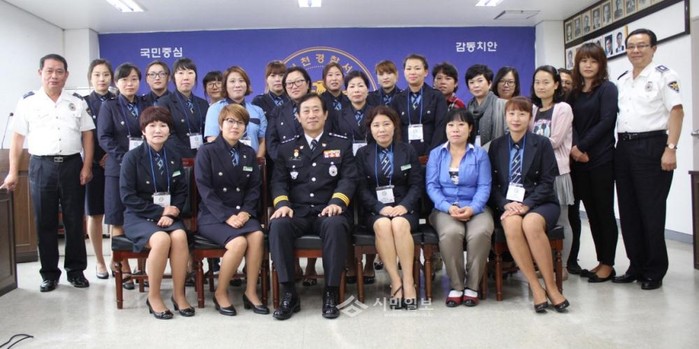 경기 이천경찰서는 최근 경찰서 2층 소통마루에서 교통경찰관 및 녹색어머니회 회원 25명이 참석한 가운데 어린이 교통안전을 위한 캠페인 등 활동사항 토의 및 어린이보호구역내 교통사고 제로화를 위한 월례회의를 개최했다. 사진은 이날 월례회의 참여자들이 기념촬영을 하는 모습. (사진제공=이천경찰서)