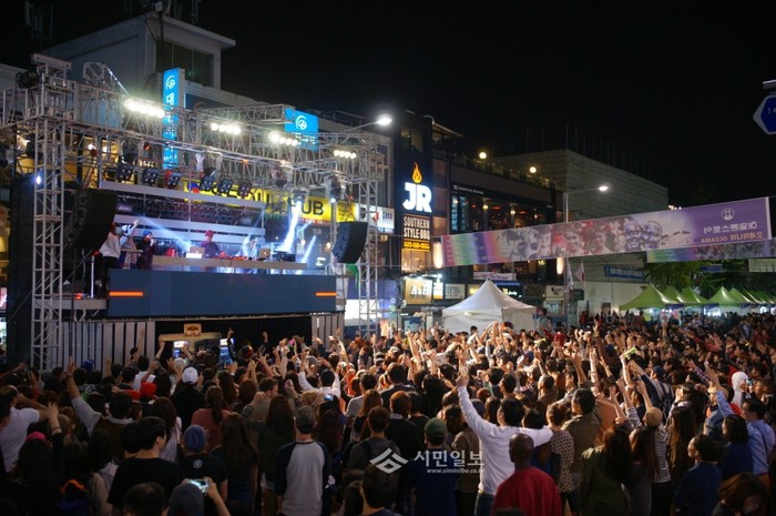 | ▲ 지난해 개최된 '이태원 지구촌 축제'의 다양한 행사 가운데 하나인 'DJ 파티' 공연장을 찾은 관광객들의 모습. (사진제공=용산구청) | ||