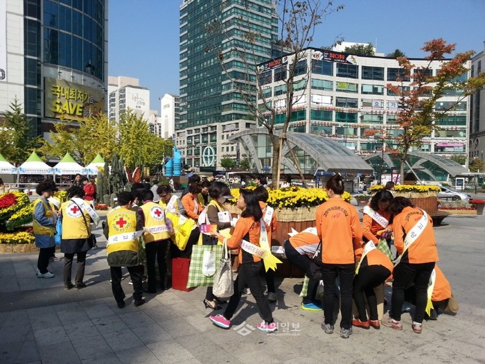 경기 고양시는 '안전점검의 날'을 맞아 지난 7일 화정역 광장에서 시 공직자, 고양여성의용소방대원, 대한적십자사봉사회고양지구협의회 등 40여명이 참여해 단풍철 대비 교통사고 예방을 주제로 안전점검의 날 캠페인을 실시했다. 사진은 캠페인 봉사자들이교통안전수칙과 국민행동요령 등 홍보를 준비하는 모습. (사진제공=고양시청)