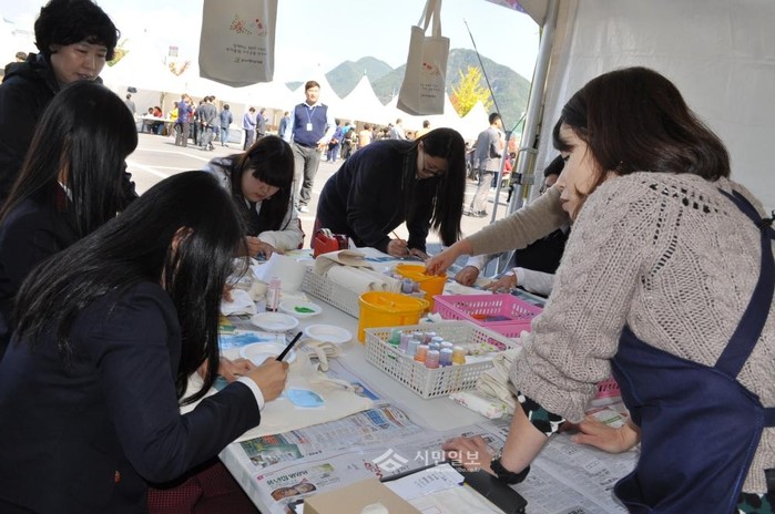 경기 가평교육지원청은 지난 7일 가평문화예술회관 앞에서 진행되는 '가평군 평생학습 축제'에서 부처통합 지역돌봄 연계서비스 활성화 사업의 하나로 유관기관 및 담당자 15명과 함께 체험부스를 운영했다. 사진은 부스를 방문한 학생들의 모습. (사진제공=가평교육지원청)