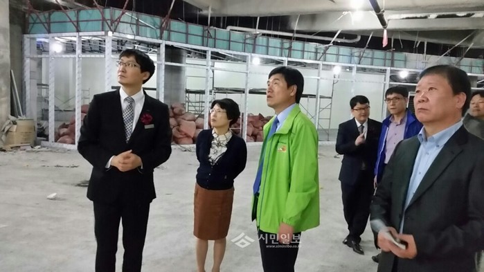 경기 고양시 일산동구는 지난 6일 구청장, 과장, 팀장 등 10여명이 참석한 가운데 고양종합터미널 내부의 화재 피해복구 현장과 입점 점포, 주변 주정차 구역, 도로 교통상황 등을 점검하는 현장행정을 실시했다. 사진은 김진용 일산동구청장(가운데 녹색옷)이 현장지도를 하는 모습. (사진제공=고양시청)