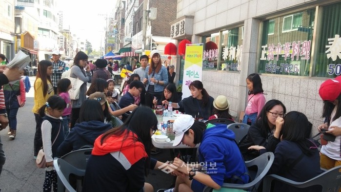 지난 9일 인천시 부평구가 지원하고 청개구리 어린이 도서관이 주최, 산곡3동 주민들로 구성된 골목축제 추진위원회가 진행을 맡은 '화랑북로 골목축제'가 산곡동 화랑북로 일원에서 열린 가운데 행사장을 찾은 지역주민들이 체험부스를 방문해 프로그램에 참여하고 있다. (사진제공=부평구청)