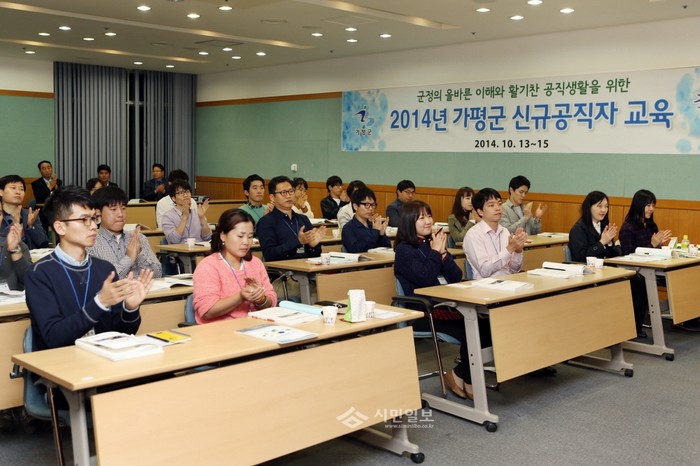 경기 가평군은 신규 임용 공무원들이 공직생활에 빨리 적응하고 기본 소양과 직무 수행을 위한 기초지식을 쌓을 수 있도록 신규 공직자 교육을 이달 13~15일 실시한다. 사진은 14일 오전 신규 임용 공무원들이 교육에 집중하고 있는 모습. (사진제공=가평군청)