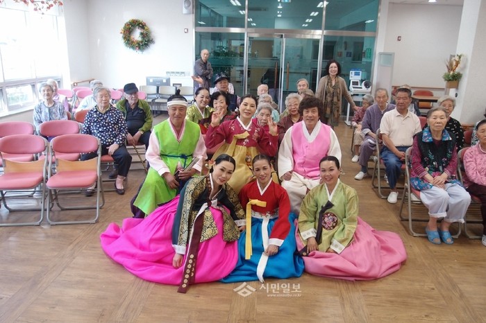 지난 14일 경기 용인시 처인구 유림동 자치센터 동아리 '한맥유림'이 지역내 문화소외계층들이 문화를 체험할 수 있도록 찾아가는 재능기부공연 '작지만 큰 행복'을 양지면 온누리요양병원에서 진행했다. 사진은 공연에 참여한 동아리 회원들의 모습. (사진제공=용인시청)