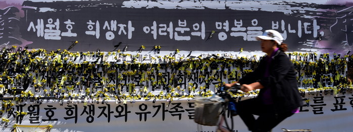 지난 4월16일 발생한 세월호 침몰사고가 어느덧 6개월을 바라보고 있다. 지난 15일 오후 경기 안산 세월호 희생자 합동분향소 입구 벽면에 근조 리본과 현수막이 자리를 지키고 있다.
