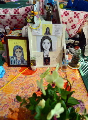 지난 4월16일 발생한 세월호 침몰사고가 어느덧 6개월을 바라보고 있다. 지난 15일 오후 전남 진도군 진도읍 진도실내체육관 한켠에 실종자 허다윤 양의 초상화가 놓여있다.