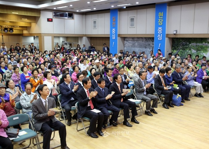 서울 서대문의회 류상호 의장을 비롯한 구의원 12명은 최근 서대문구청 대강당에서 '제18회 노인의 날'을 맞아 지역노인 500여명 및 문석진 서대문구청장 등 내빈들이 참석한 가운데 개최된 기념행사에 참석했다. 사진은 이날 열린 '노인의 날 기념행사'에 참석한 노인 및 내빈들의 모습. (사진제공=서대문구의회)