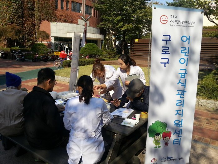 최근 서울 구로구 어린이급식지원센터가 구민과 어린이들의 올바른 식생활 유지를 돕기 위해 구로근린공원에서 전문영양사들이 주민 500여명을 대상으로 비만도를 측정하고 영양상담을 진행하는 '영양의 날 행사'를 진행했다. 사진은 영양상담에 참여한 주민들의 모습.(사진제공=구로구청)