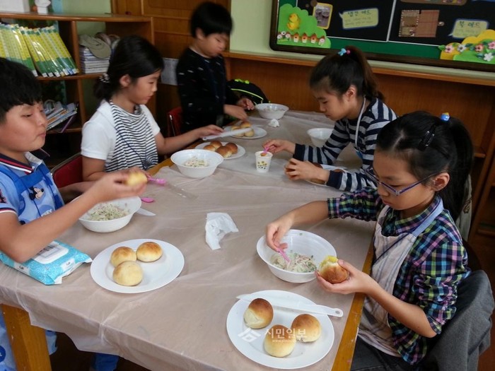 경기 부천시 부흥초등학교는 최근 ‘꿈자람·감성키움·지성채움을 통한 행복한 학교 만들기’의 일환으로 학생들의 꿈과 끼를 찾기 위한 문화예술학교를 운영했다. 사진은 제과·제빵분야를 체험하는 3·4학년 학생들의 모습. (사진제공=경기도부천교육지원청)