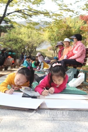 지난 18일 서울 강북구 우이동 국립 4.19민주묘지에서 어린이와 학부모 1000여명이 참가한 가운데 ‘제16회 아동 그림그리기 대회’가 열렸다. 사진은 대회에 참가한 어린이들이 '가족'과 '가을풍경'을 주제로 그림을 그리고 있는 모습. (사진제공=강북구청)