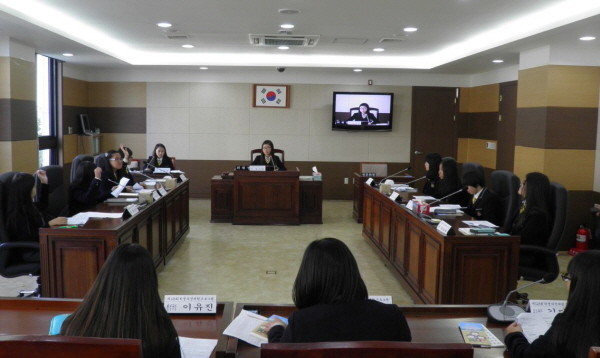 이날 신현여중 학생들은 모의 상임위원회와 본회의 회의에서 안건상정, 제안 설명 및 검토보고, 질의 및 답변, 찬반토론, 표결 등을 통해 의회의 의사결정과정을 체험했다.