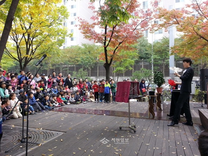 최근 서울 구로구 오류2동 소공원에서 오류2동 문화축제추진위원회가 주관한 오류골 어울림 문화축제가 열렸다. 이날 축제에서는 구로구 평생학습동아리의 난타, 마술 등이 공연되고 천연비누 만들기 등의 체험행사가 열렸다. 사진은 마술 공연이 진행 중인 모습. (사진제공=구로구청)
