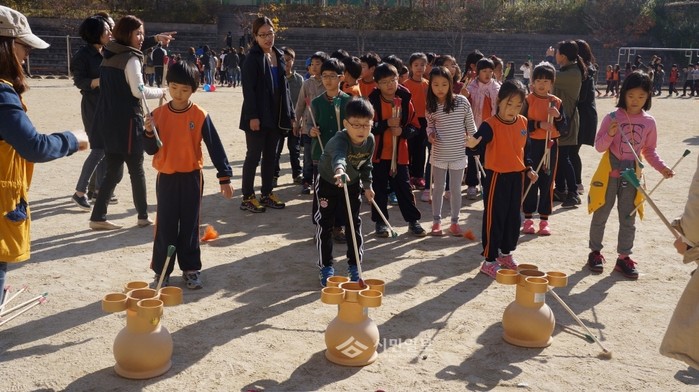경북 구미 구평남부초등학교는 지난 28일 전교생이 참여한 가운데 '제4회 꿈·사랑·감동이 있는 솔빛 축제'를 개최했다. 사진은 전통놀이 체험 중인 구평남부초 학생들의 모습. (사진제공=구미교육지원청)