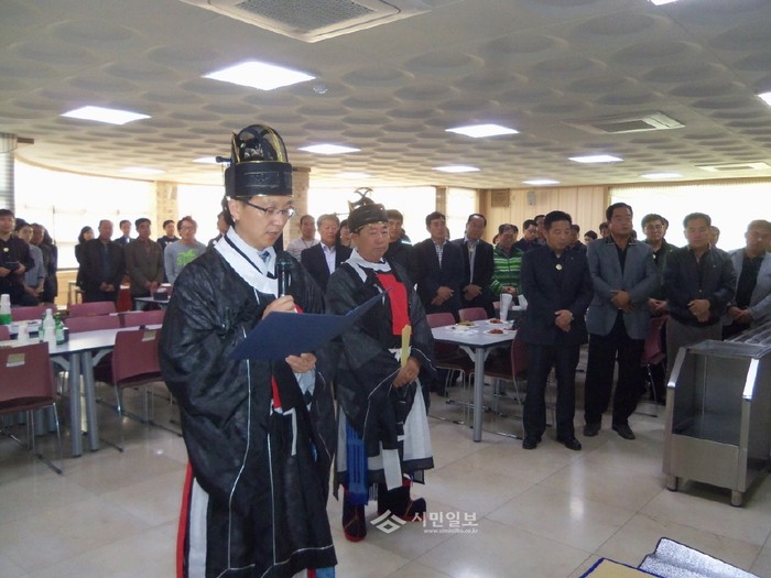 지난 29일 경기 안성시와 축산단체협의회는 안성시청 구내식당에서 AI와 구제역 등 악성 가축질병의 안녕을 기원하는 '가축질병 안녕 기원제'를 열었다. 사진은 이날 행사에 참가한 이진찬 부시장의 모습. (사진제공=안성시청)