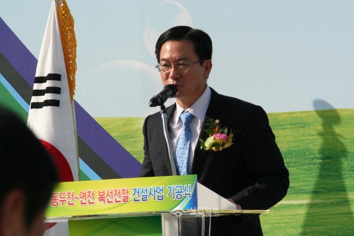 '경기북부의 새시대, 함께하는 녹색철도'라는 슬로건으로 '경원선 동두천~연천 복선 전철 건설사업 기공식'이 31일 연천 전곡역에서 김규선 연천군수를 비롯해 연천포천지역 김영우 국회의원, 양주동두천지역 정성호 국회의원, 강영일 한국철도시설공단 이사장과 지역주민 등이 참석한 가운데 열렸다.