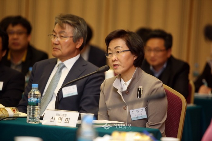 최근 신연희 강남구청장이 중구 은행회관빌딩에서 ‘지자체와 선진시민 운동 성공사례’를 주제로 열린 ‘한국선진화포럼’에 참석해 한 대학생의 질문에 답변하고 있다. (사진제공=강남구청)