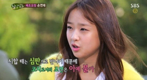 이어, "현역선수 코치가 심판을 보다보니 심판 매수설에 대해서도 말이 있었다"는 MC 김제동의 질문에 손연재는 "니표도바 코치는 나 뿐만 아니라 일본 선수의 코치기도 하다. 자주 발생하는 일이고, 대신 시합 때 코치를 볼 수 없다. 코치로서의 조언은 아예 불가하다"고 설명했다.