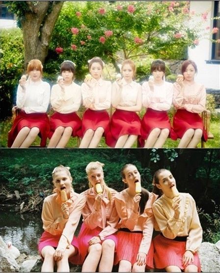 특히 이들의 의상과 배경, 무언가 먹고 있는 콘셉트가 매우 비슷하다.