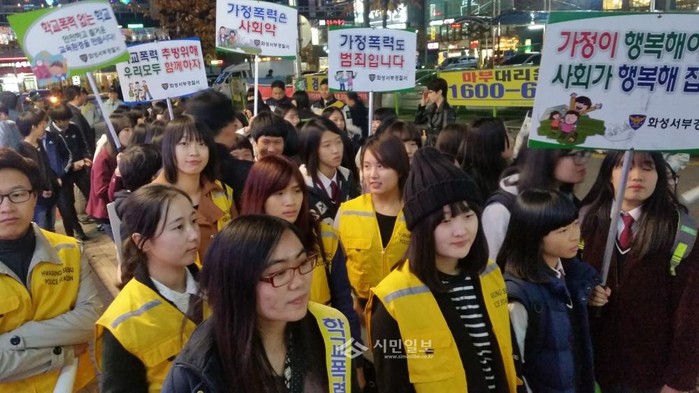 경기 화성서부경찰서는 수능일 전후를 기점으로 청소년의 비행행위가 증가하는 것을 막기 위해 유관기관과 합동으로 청소년 유해업소에 대해 선제적 계도·단속을 실시했다. 사진은 화성서부경찰서와 학생, 유관기관 등 총 60명이 청소년이 밀집하는 동화리 중심상가 일대에서 합동 캠페인을 진행 중인 모습. (사진제공=화성서부경찰서)