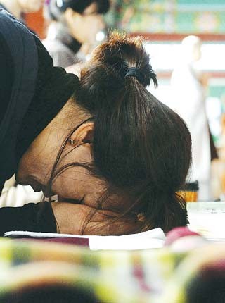 2015학년도 대학수학능력시험을 나흘 앞둔 9일 오전 대전 서구 세능선원을 찾은 한 시민이 자녀의 수능 합격을 위해 기도를 하고 있다.