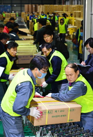 2015학년도 대학수학능력시험을 앞둔 10일 오전 중부지역의 한 인쇄업체에서 직원들이 전국의 각 시험지역으로 배포될 수능 문제지와 답안지를 분류하고 있다.
