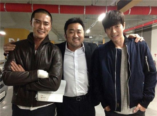 | ▲ 왼쪽부터 조동혁, 마동석, 박해진 (사진=마동석 트위터) | ||