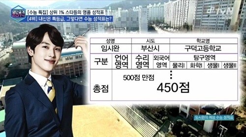 또한 이날, 임시완이 '부산의 서울대'라고 불리는 부산대학교를 입학하던 때 받았던 수능성적이 공개됐다.