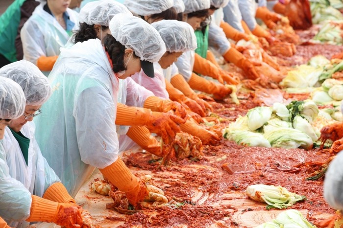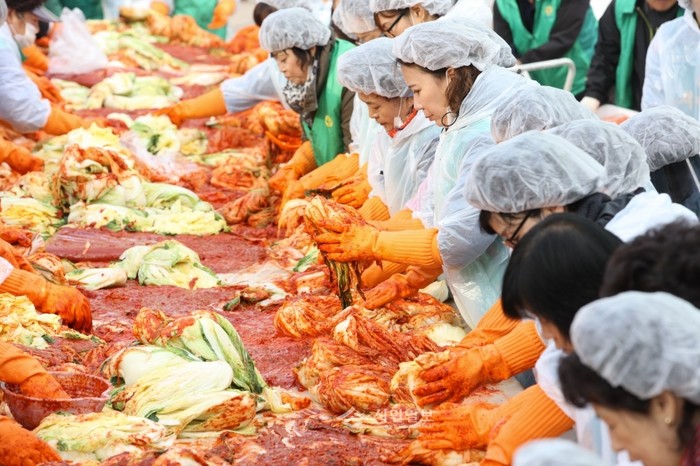 성동구는 11일 오전 구청 광장에서 새마을부녀회 주관으로 '사랑의 김장담그기 행사'를 진행했다. 김장은 지역내 무의탁 노인, 결식아동, 소년소녀가정, 한부모 가정, 장애우 가정 등 저소득 가구에 가구당 1상자(10kg)를 전달할 예정이다. (사진제공=성동구청)