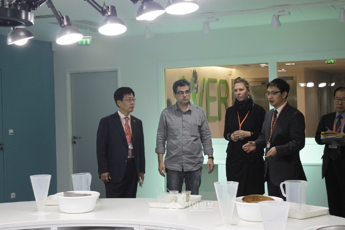경기 고양시가 최근 프랑스 파리에서 개최된 ‘2014 파리 도시하수처리 국제워크숍’에 참석, 대한민국을 대표해 '원능하수처리장 총인처리 및 색도저감시설'의 우수사례를 발표했다. 사진은 고양시 홍보를 위해 행사장을 직접 찾은 최성 시장(왼쪽 첫번째)의 모습. (사진제공=고양시청)