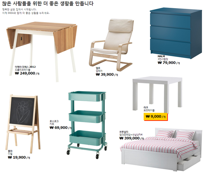 13일 이케아 코리아 홈페이지(www.ikea.com/kr)를 통해 공개된 정보를 보면 책상·의자 등의 가구를 비롯해 식기도구, 조리용품 등 생활용품까지, 총 8000여개가 넘는 제품과 가격이 일제히 올라왔다.