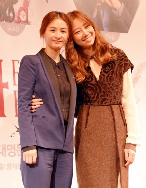 | ▲ 14일 오후 서울 대학로 대명문화공장에서 진행된 연극 '리타' 제작발표회에서 배우 강혜정과 공효진이 포토타임을 하고 있다./뉴시스 | ||