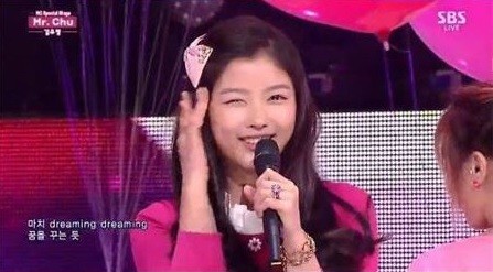 에이핑크의 '미스터 츄'의 멜로디와 함께 핑크빛 드레스를 입고 걸그룹 못지 않은 춤실력을 보였다.