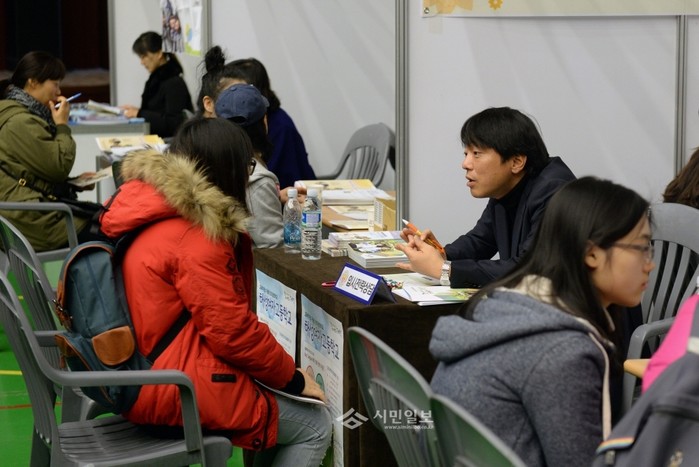서울 동대문구는 지난 15일 오후 2시 구청 2층 다목적강당에서 지역내 11개 고등학교가 총 출동하는 ‘2015학년도 고교 진학정보 박람회’를 개최했다. 사진은 '2015년도 고교진학' 상담을 받고 있는 중3 학생의 모습. (사진제공=동대문구청)