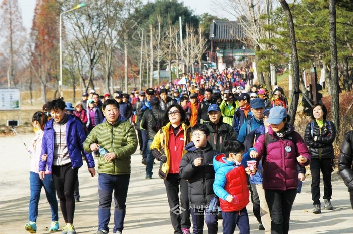 지난 15일 경기 여주시 여강길 4코스 '5일 장터길'에서 비영리 민간단체 '여강길'이 주최, 여주시·세종신문·여주신문이 후원한 여주시 승격 1주년 기념 ‘2014 여강길 걷기축제’가 개최됐다. 사진은 이날 걷기행사에 참여한 시민들의 모습. (사진제공=여주시청)