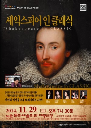 셰익스피어 탄생 450주년 기념 공연 '셰익스피어 인 클래식'은 29일 오후 7시 30분에 노원문화예술회관 대공연장에서 열리며, 관람료는 전석 2만원이다.