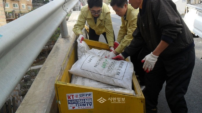 지난 19일 고양시 덕양구 고양동 주민센터는 성큼 다가운 동절기를 대비해 폭설취약구간을 대상으로 중점관리 및 도로안전 확보, 주민생활 불편 최소화를 위해 수립한 자체 제설대책에 따라 제설함과 제설제를 점검했다. 사진은 고갯길 등에 설치된 제설함을 점검하는 동 직원들의 모습 (사진제공=고양시청)