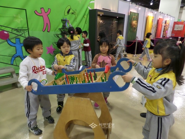 경북 구미시 천생초등학교 병설유치원은 최근 원아 65명을 대상으로 대구과학관에서 다양한 물건들을 마음껏 보고 체험하며 상상할 수 있는 '별난물건특별전 체험활동'을 실시했다. 사진은 이날 과학관을 방문한 아이들이 옹기종기 모여 다양한 물건들을 직접 만지며 다루고 있는 모습. (사진제공=구미교육지원청)