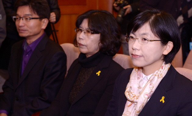 이정희 통합진보당 대표와 당관계자들이 25일 오전 서울 종로구 재동 헌법재판소 대심판정에서 열린 통합진보당 정당해산 심판 최종변론에 참석하고 있다.